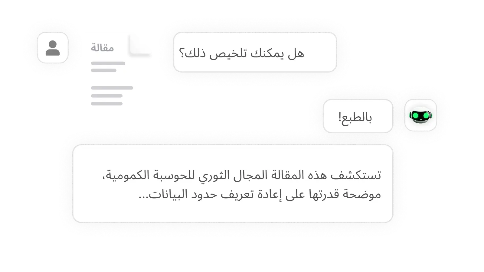 لخّص أي مقال مع Chat & Ask AI واحصل على إجابات دقيقة. افهم النقاط الأساسية بسرعة واكسب رؤى فورية من النصوص الطويلة.