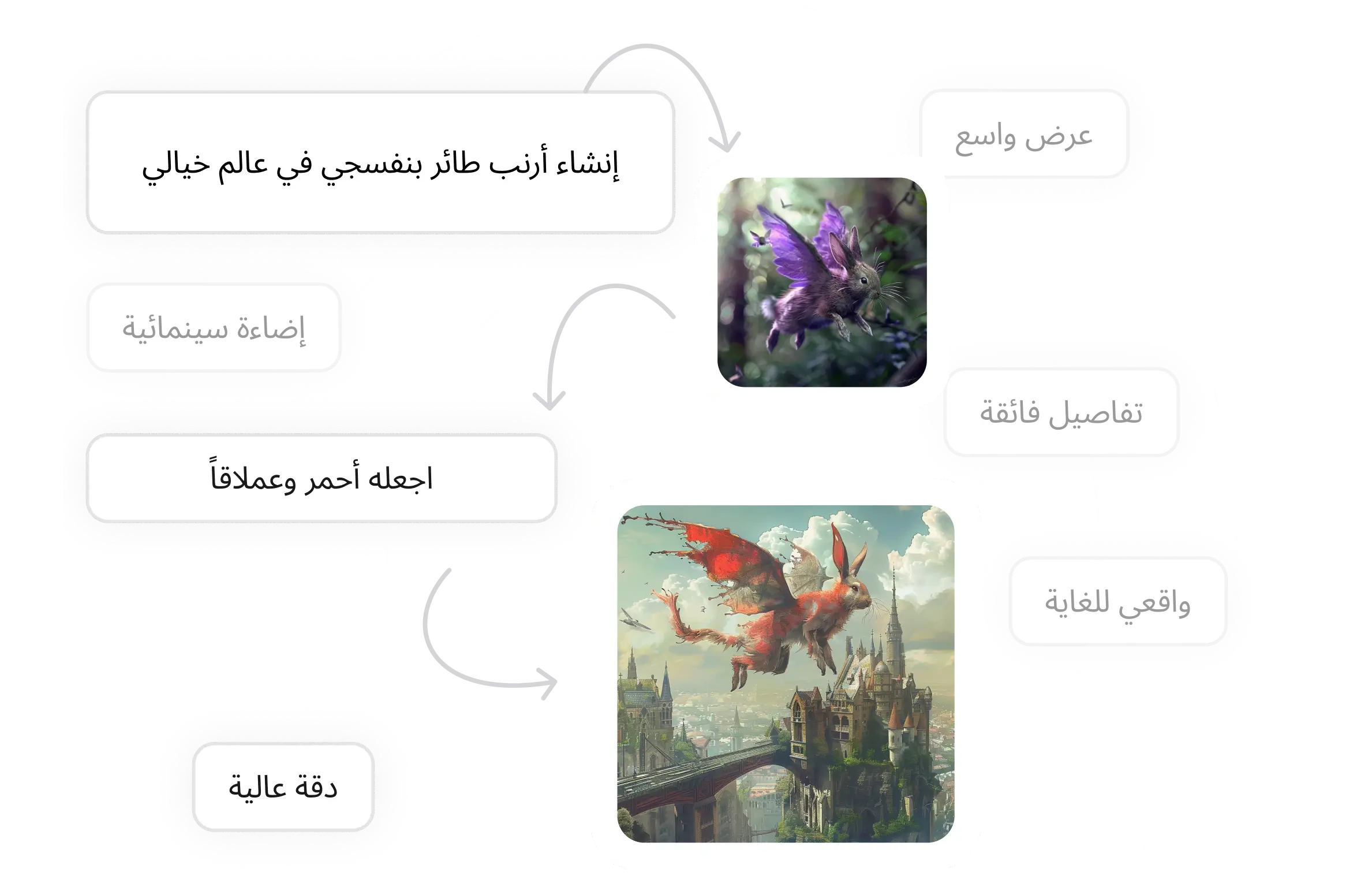 أفكار معقدة: يمكن للنظام فهم الأفكار المجردة والخيالية وتجسيدها بصريًا بدقة.