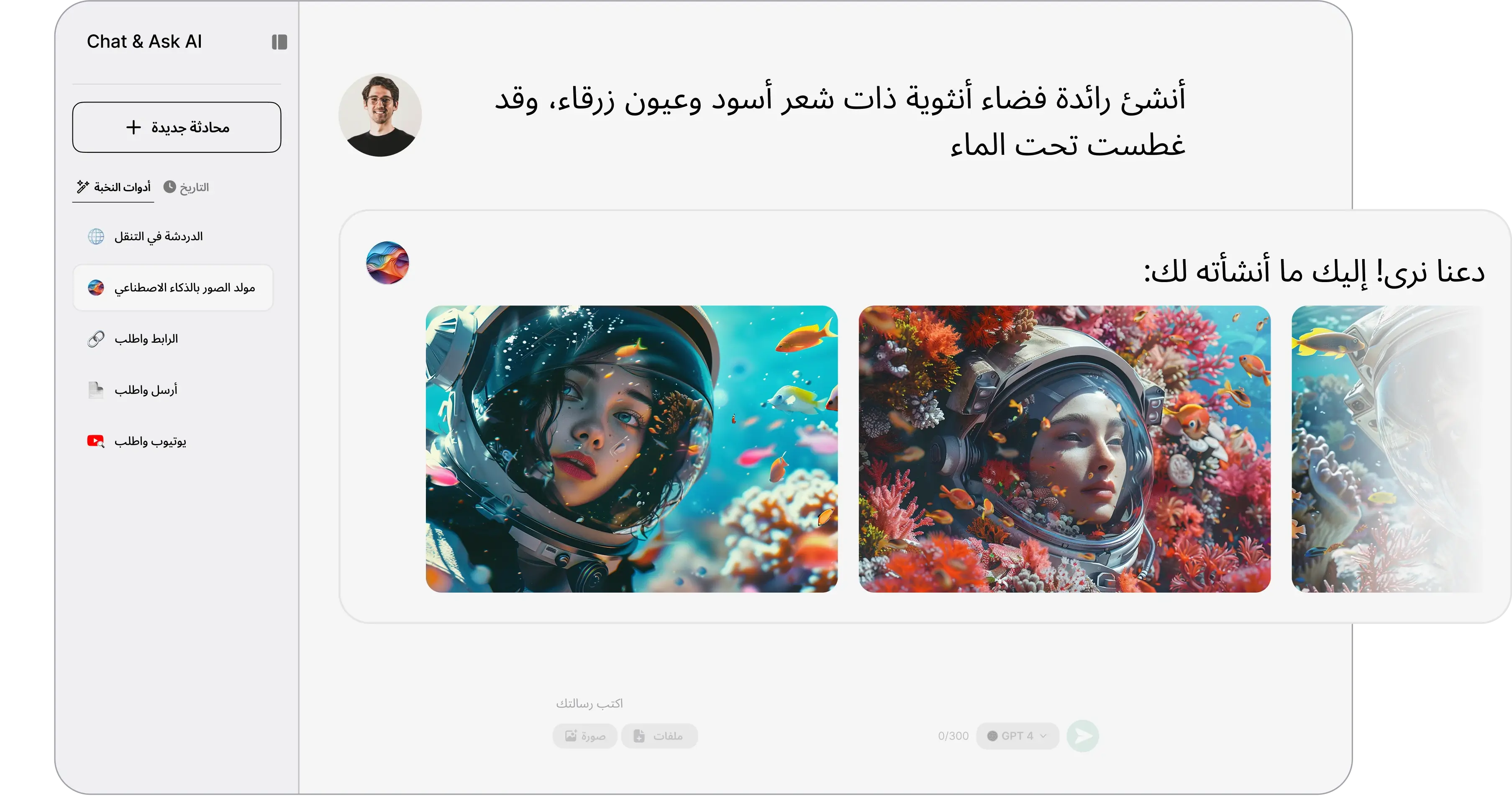 يفتح منشئ الصور في Chat & Ask AI آفاقًا جديدة لإنشاء المحتوى البصري بسهولة. باستخدام الذكاء الاصطناعي المتقدم، يمكنك إنتاج صور فريدة دون الحاجة إلى مهارات تصميم أو برامج مكلفة، ما يجعل إنشاء الصور متاحًا للجميع.