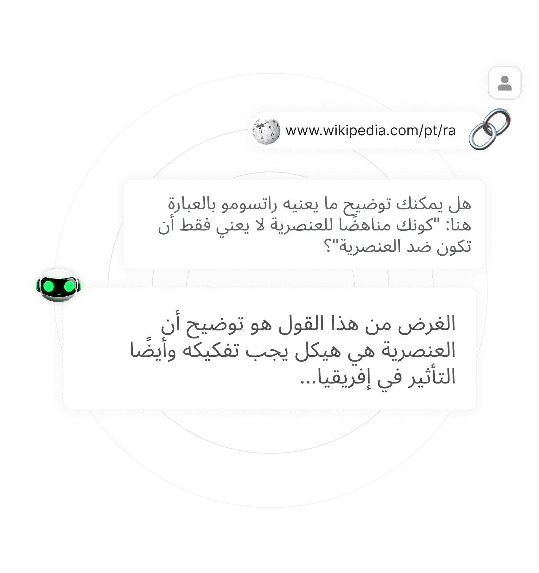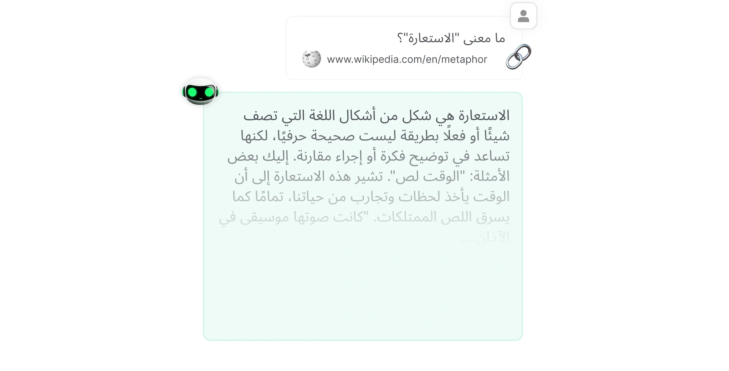 بمجرد إرسال الرابط، يبدأ النظام بالعمل باستخدام أساليب تلخيص ذكية لتحليل المحتوى واستخلاص أهم النقاط مع الحفاظ على المعنى العام والتفاصيل المهمة. بهذه الطريقة، تحصل على إجابات دقيقة مباشرة من المصدر، مما يساعدك في البحث القائم على الحقائق واتخاذ قرارات أفضل.