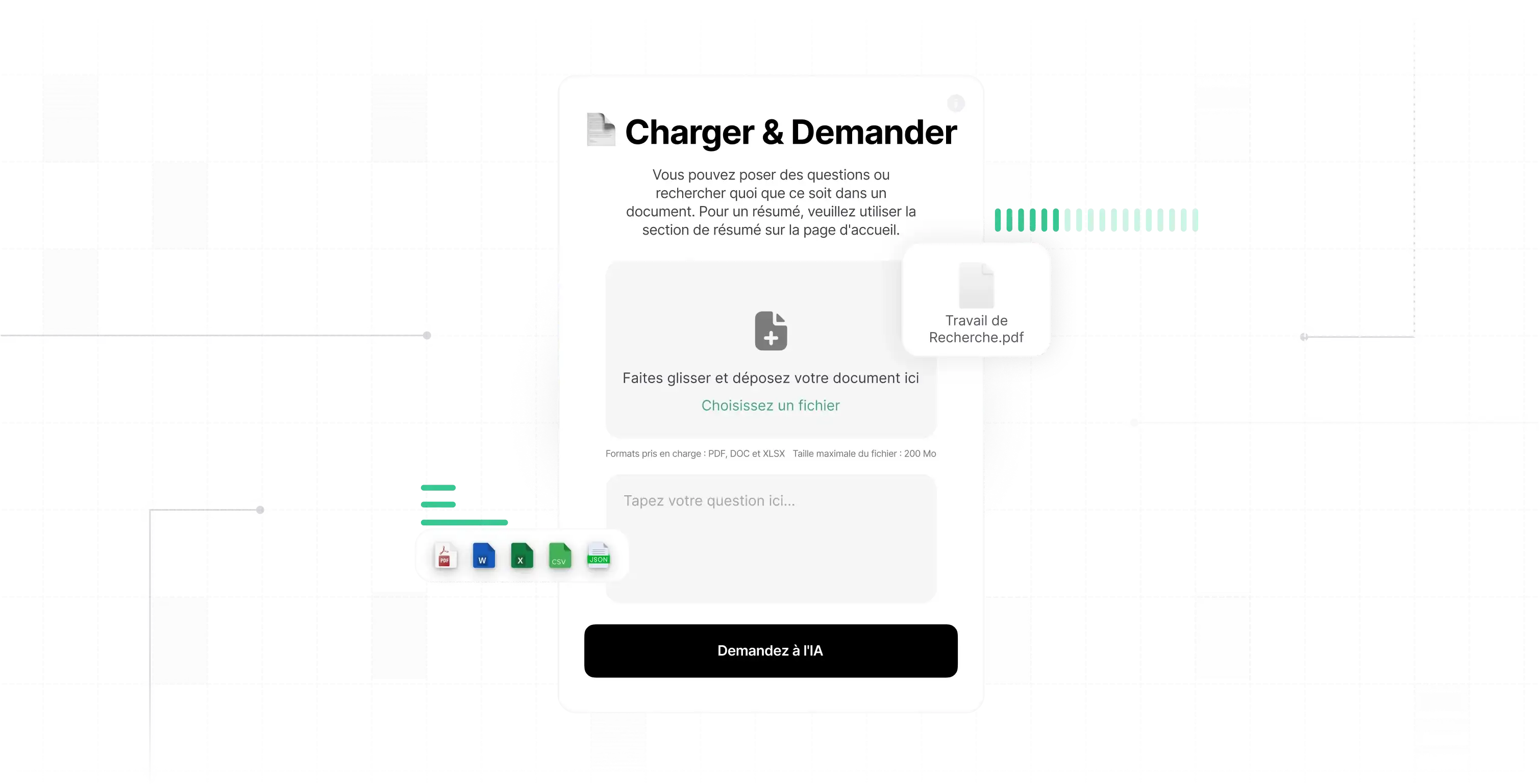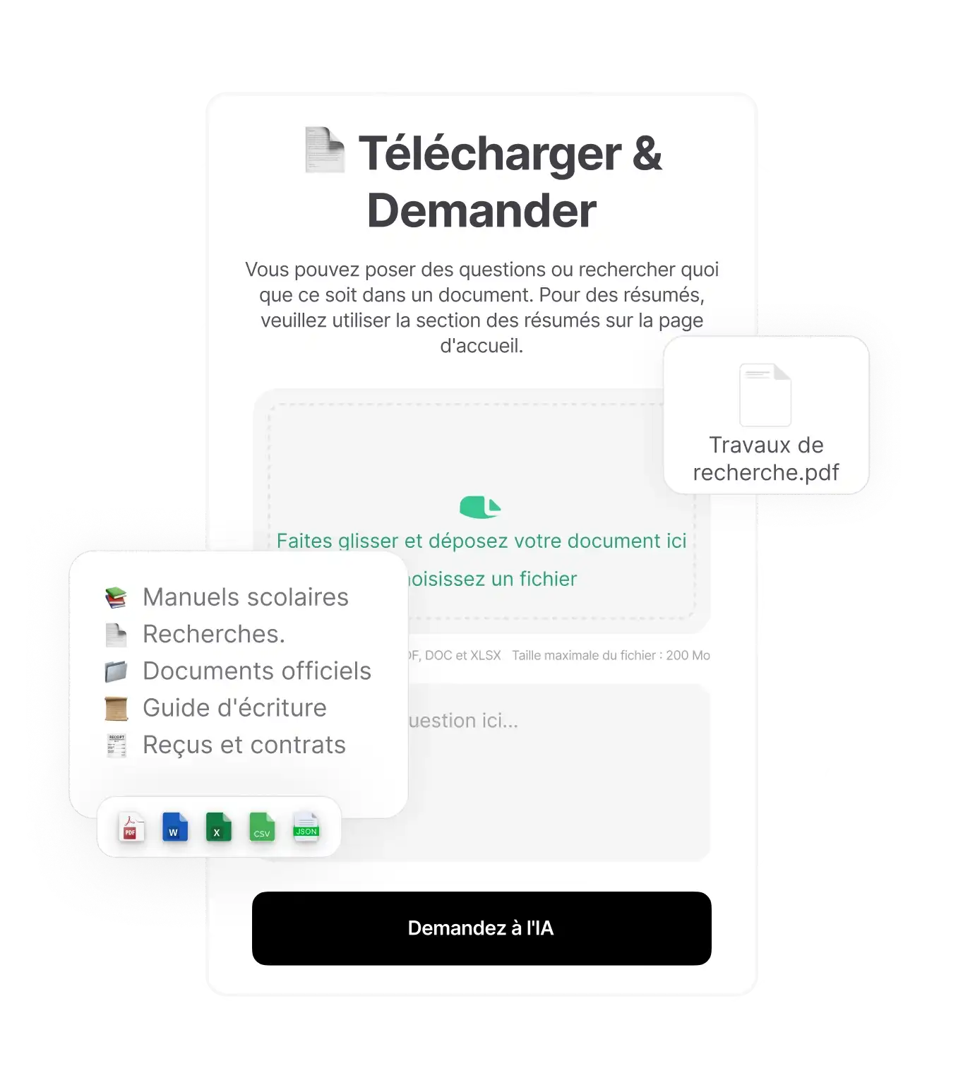 Utilisez Chat & Ask AI pour résumer tout document ! Téléversez PDF, Word, Excel et autres formats pour obtenir rapidement des réponses détaillées. Posez vos questions et laissez l’IA fournir des réponses complètes.