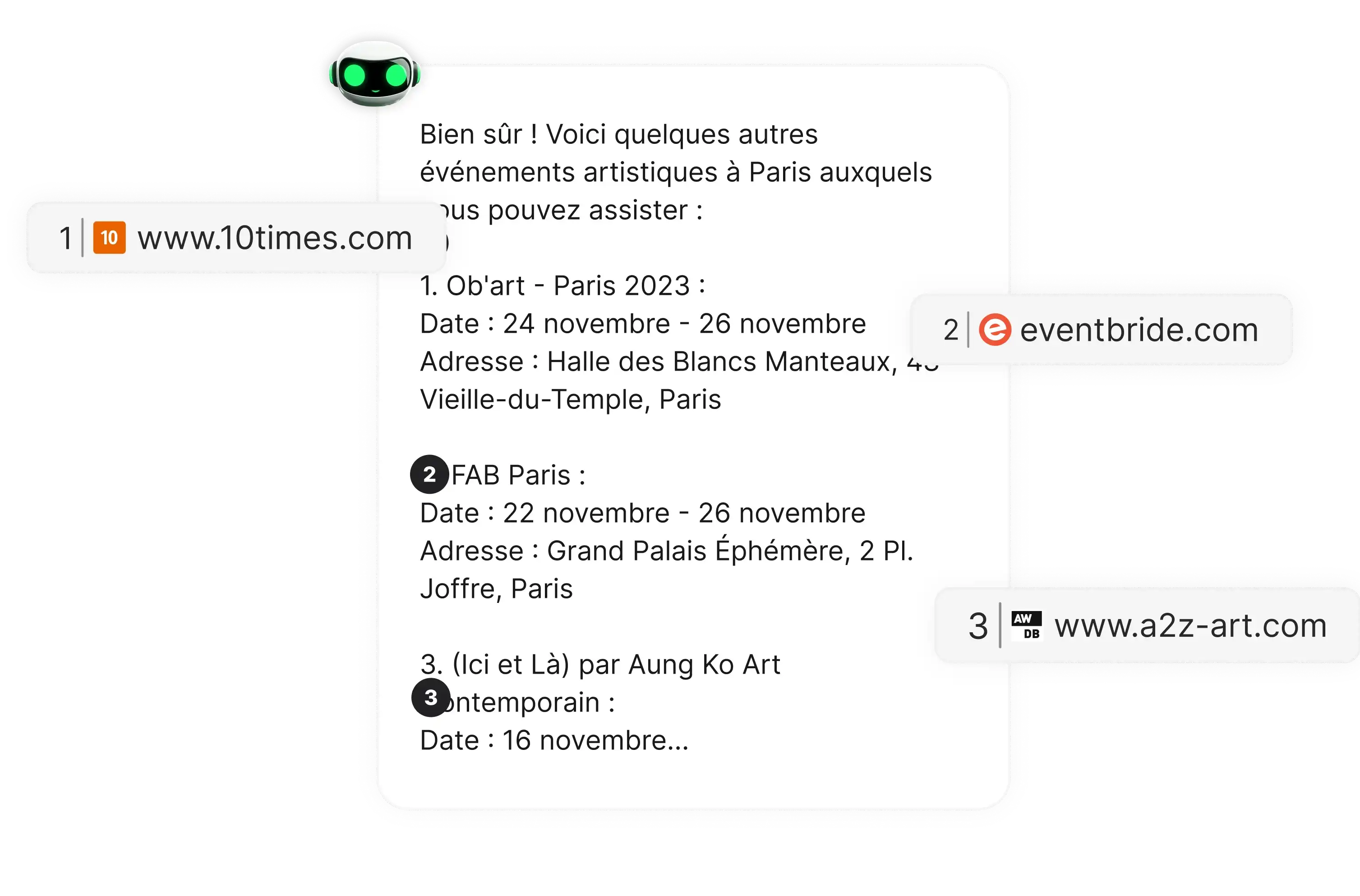 Chat & Ask AI parcourt le web grâce à des algorithmes avancés et rassemble des points de vue fiables issus d’articles, de publications de recherche, de forums et plus encore.
