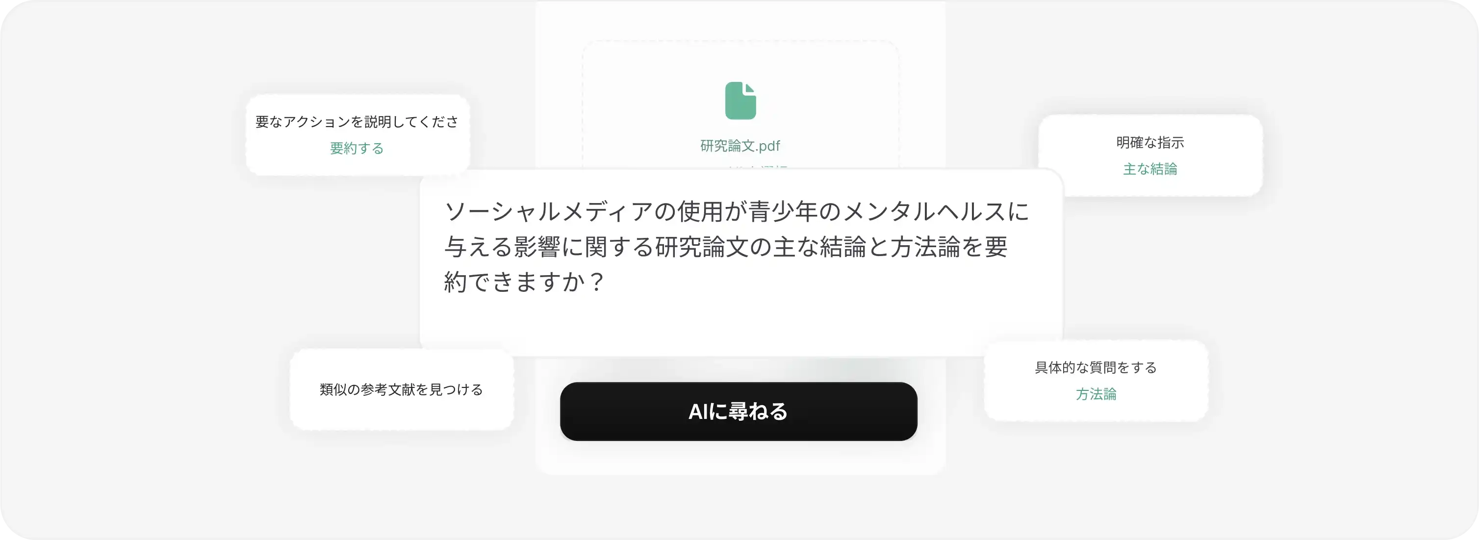 このAI PDF機能は、大量の文書から具体的な答えを必要とする学術研究者、法律専門家、そして企業に特に役立ちます。詳細な質問をしたり、特定の指示を与えることで、システムの自然言語処理能力により焦点を絞った洞察を得ることができます。